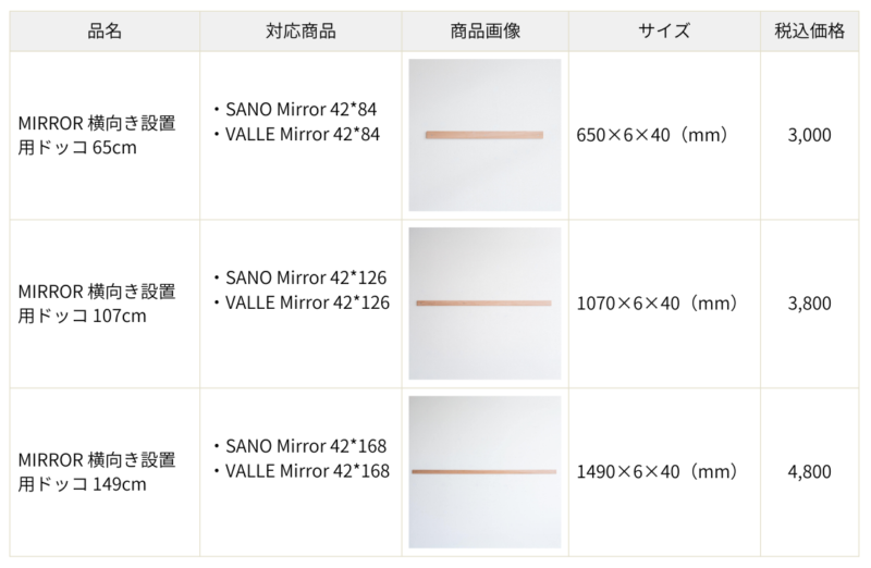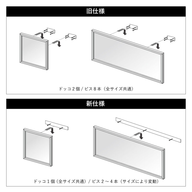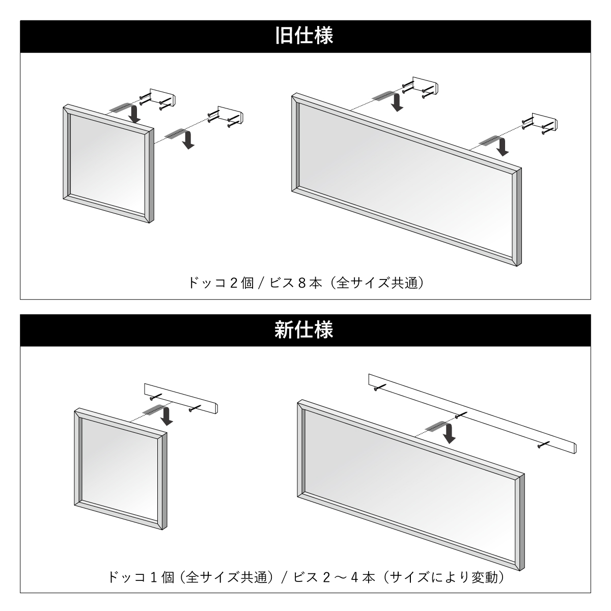 この度、弊社商品「MIRROR」シリーズの取り付け用ドッコ(壁掛け用部品)の仕様を変更いたします。